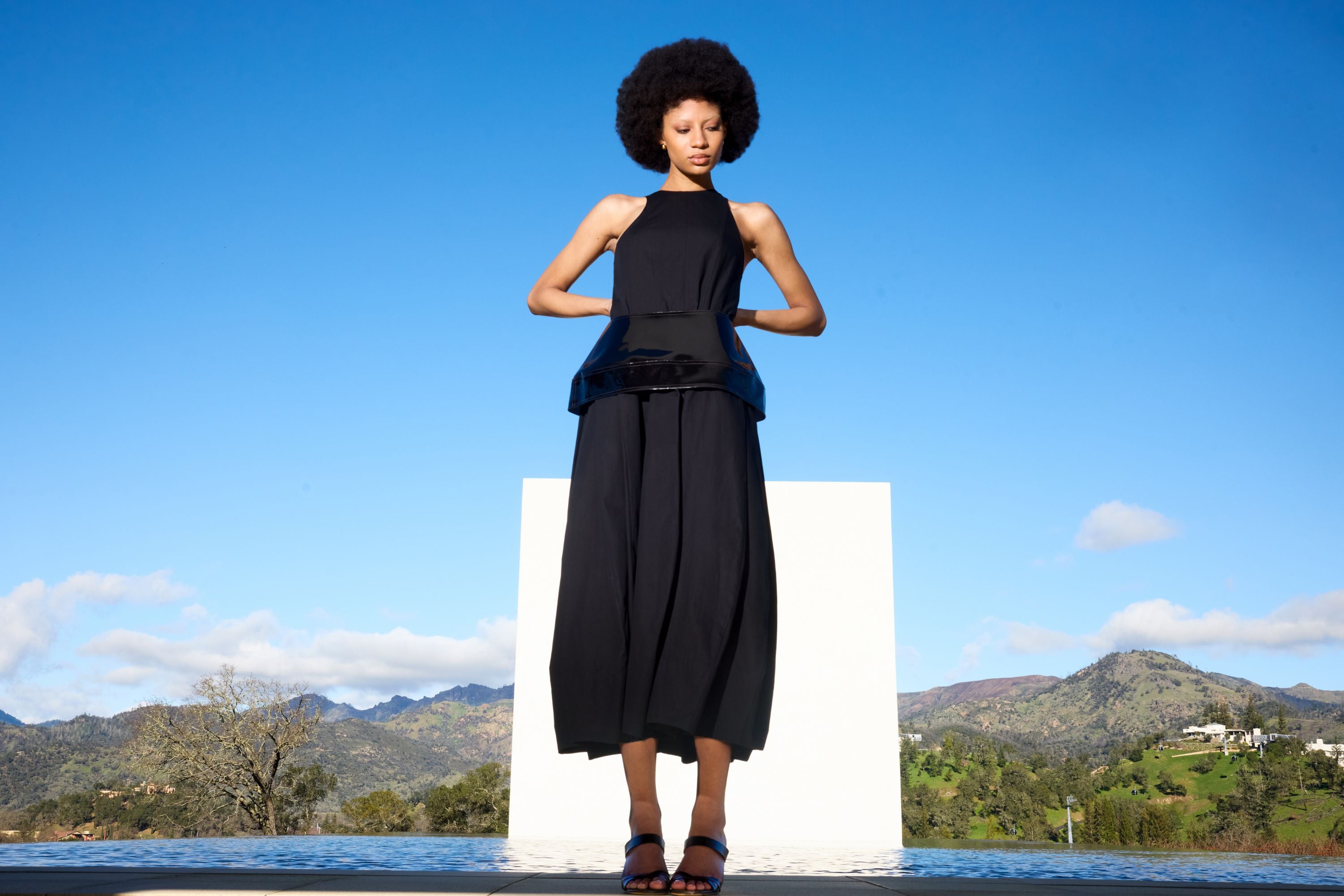 Compact Eco Poplin Pinched Pleat Dress