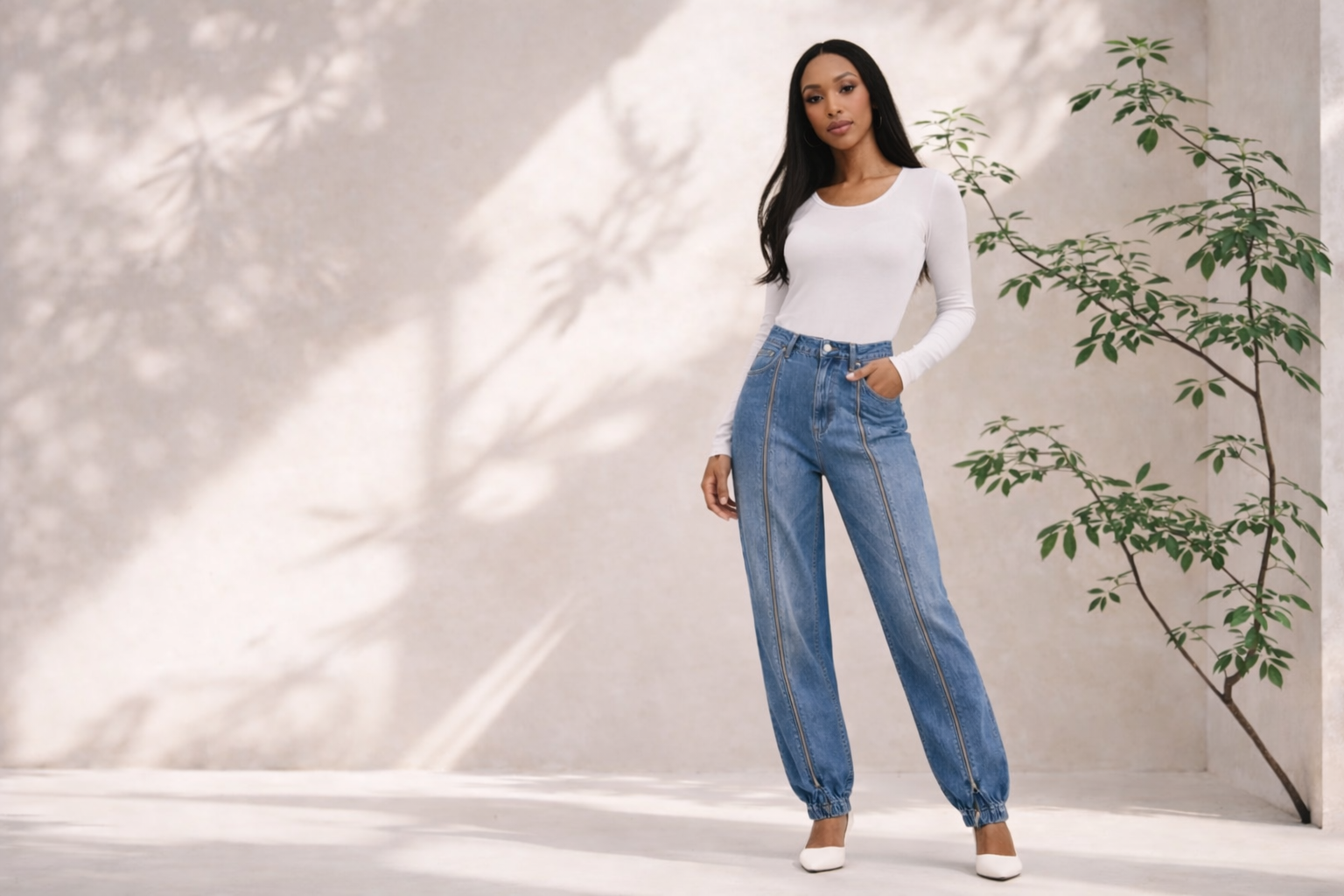 Zippered Denim Jogger